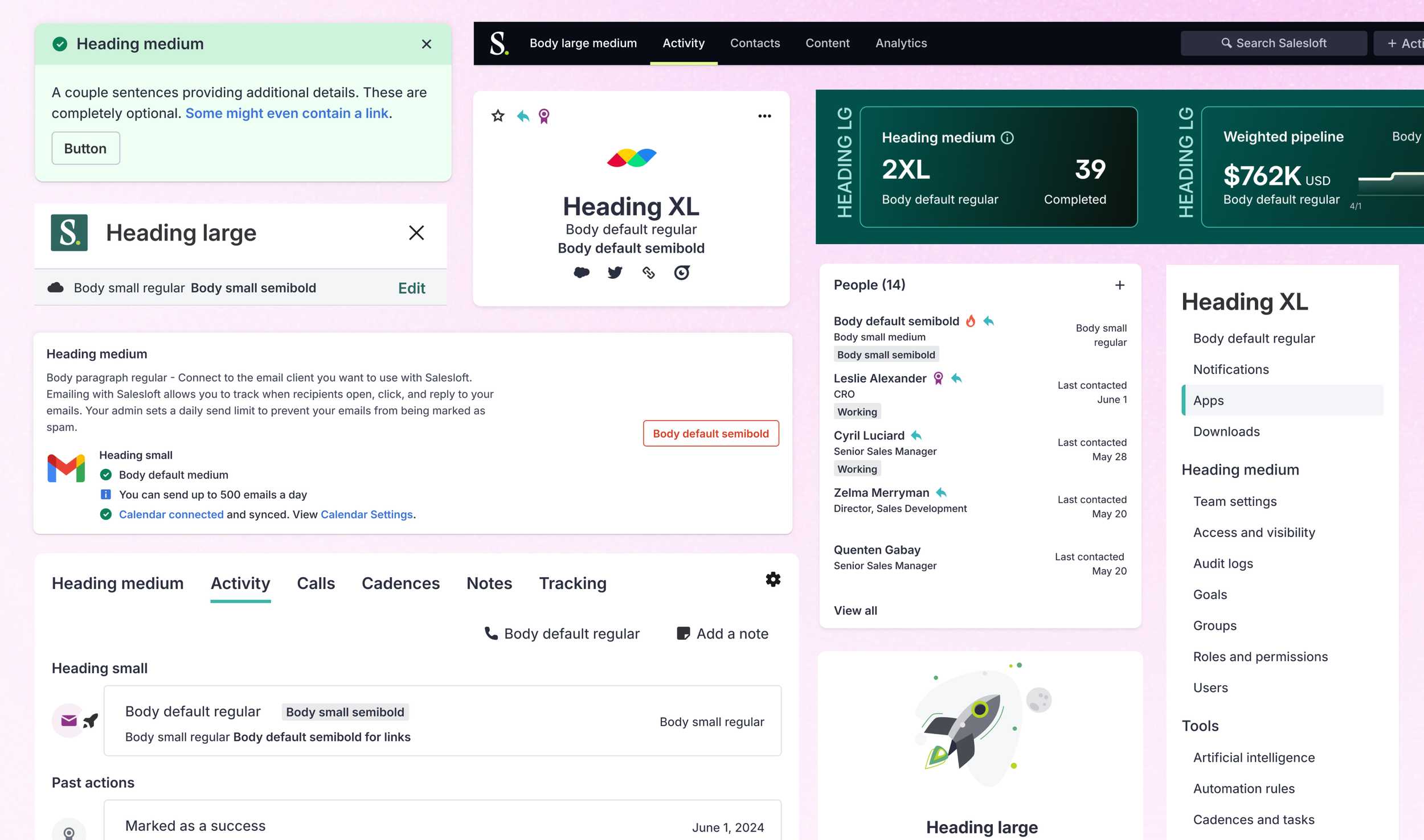 By exploring full-page mockups with Inter Variable, I enhanced the typographic hierarchy throughout the Salesloft app. I focused on content-heavy pages, proposing type styles that improved content flow and readability. These updates further strengthened Salesloft's Design System, ensuring consistency and improved user experience.