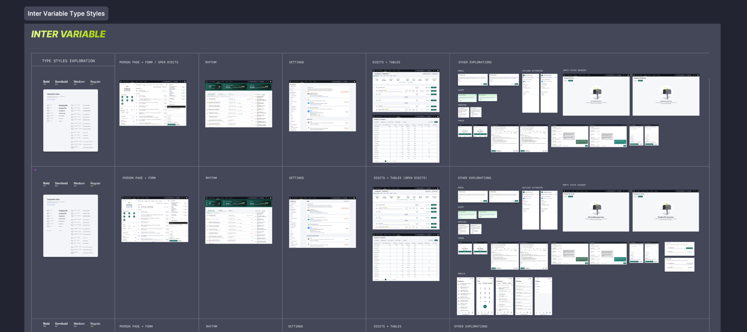 Through multiple iterations and explorations, the flexibility of Inter Variable allowed me to create new typeface weights, ranging from a 450 regular base to a 700 bold. I also introduced stylistic alternatives for digits, including a flat-top 3 and variations for 6 and 9, which significantly enhanced readability in charts, tables, and data-heavy content.